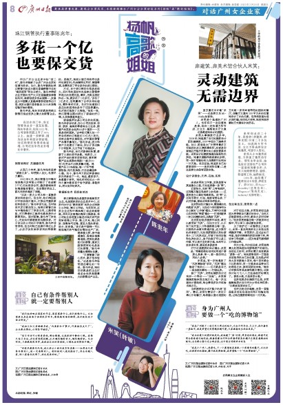 米笑从事建筑行业多年,2006年,她组建了自己的建筑设计团队扉建筑,2007年创办了扉美术馆。如今,前者是为广州带来最多文艺地标的本土建筑事务所;后者是华南地区开馆历史最长的公益民营美术馆。米笑设计的建筑强调在地性和无界性。她喜欢接触和挑战新的东西,凭一股不怕输的劲儿在建筑行业闯出一片天地。谈及经验,她说到自己的柔软法则——一是灵活找位置;二是在坚持之余保有回旋余地。