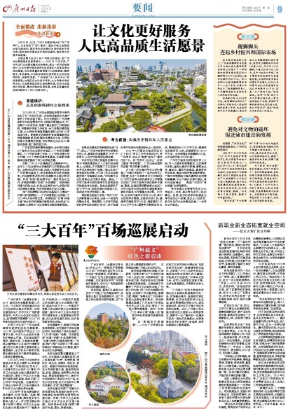 活动现场,嘉宾们从越秀山出发沿“广州起义”红色路线前行:在越秀山越王台观英雄花开,在广州起义纪念馆聆听英烈故事,在广州起义烈士陵园感受浩然之气……这条路沉淀着广州起义的红色记忆。
