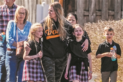 3月27日,在美国田纳西州纳什维尔市,一名女子陪伴经历枪击事件的孩子。 新华社发