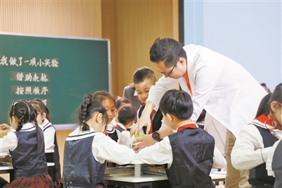 宋铮在给学生上《我做了一项小实验》跨学科课程。