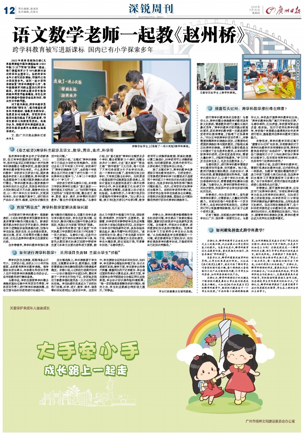 语文数学老师一起教《赵州桥》