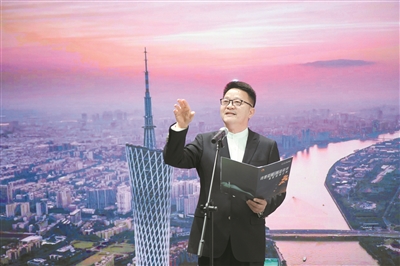国家一级演员郭东文演绎《广州塔赋》(资料图片)。 广州日报全媒体记者杨耀烨 摄