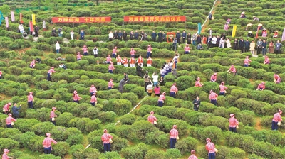 广州日报讯 (全媒体记者曾焕阳 通讯员蓝天明摄影报道)春雨催新芽,品茗正当时。4月8日,“万绿客乡,茶韵飘香”——2023年河源春茶开采季活动暨东源仙湖茶文化节在河源市东源县上莞镇举行。当天,来自省内外的茶农、茶企、品茶师、茶叶爱好者数百人齐聚仙湖山顶,共品客乡茶韵,共商茶产业高质量发展,共谋乡村振兴之路。