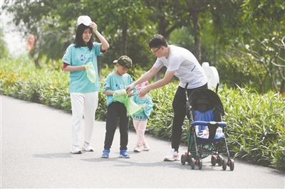 一抹抹亮丽的绿色身影,穿梭于全市五区的打卡点。精心设计的5大线路均为风景优美的绿色路线,各区标志性的景点串珠成链,生态美景“打包呈现”。在各会场现场,不少亲子家庭争当分类小能手,全家行动“益”起践行垃圾分类。