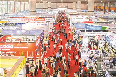 根据中国对外贸易中心数据,截至4月18日当天闭馆,第133届广交会展馆进馆累计客流量1113911人次。图为广交会展馆内客商云集。