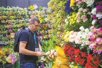 采购商在挑选仿真花卉。广州日报全媒体记者李波、陈忧子 摄