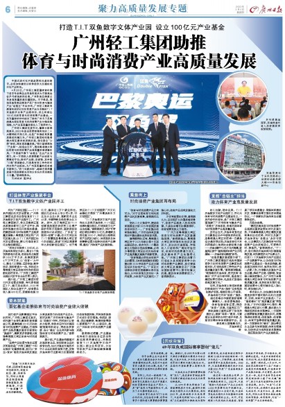 在打造产业聚集园区平台的同时,广州轻工集团还宣布,依托旗下全资私募股权投资基金公司,募集规模100亿元的体育与时尚消费产业基金,打造推进产业高质量发展项目投资的“操盘手”,集聚更多资源做大做强粤港澳大湾区体育与时尚消费产业。