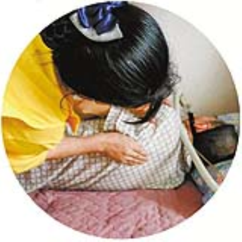 接着,她们一边为朱叔脱去衣服,细心地盖上浴巾,一边从洗手间接温水倒入沐浴桶里,开动电源进行保温,并安装好各种管子,洗浴工作正式开始。