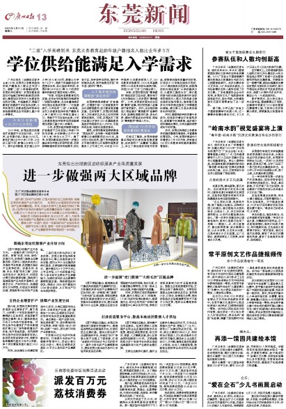 今年,东莞市政府继续将教育扩容提质千日攻坚纳入年度十件民生实事,计划新增公办中小学(幼儿园)学位6.35万个。接下来,东莞市教育局还将进一步建立健全学位年度分析研判机制,切实保障新建学校项目用地需求,优化各片区、各学段学位供给,提升学校建设品质,更好地满足市民“有书读、读好书”需求。
