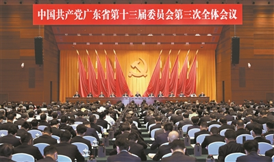 广州日报讯 6月20日,中国共产党广东省第十三届委员会第三次全体会议在广州召开。会议以习近平新时代中国特色社会主义思想为指导,深入学习贯彻党的二十大精神和习近平总书记视察广东重要讲话、重要指示精神,围绕实现总书记赋予的使命任务,进一步深化新时代新征程广东现代化建设的具体部署,带领全省上下坚持以高质量发展为牵引,奋力在推进中国式现代化建设中走在前列。省委书记黄坤明代表省委常委会作报告。