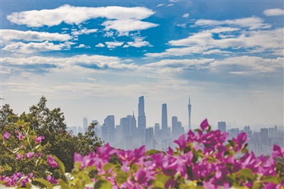 白云山山顶广场,鲜花盛放,与美轮美奂的珠江新城城市美景融为一体。广州日报全媒体记者陈忧子摄