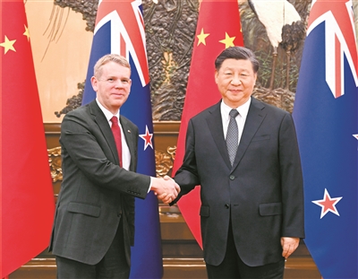 习近平指出,总理先生就任后多次表示重视中新关系,将继续加强同中国合作,我对此十分赞赏。我一直高度重视中国同新西兰的关系。2014年,我访问了新西兰,双方宣布建立全面战略伙伴关系。近10年来,中新关系持续健康稳定发展,给两国人民带来实实在在的好处,也有利于地区和平稳定和发展繁荣。中国一直把新西兰当作朋友和伙伴,愿同新方共同努力,开启两国关系新的50年,推动中新全面战略伙伴关系行稳致远。