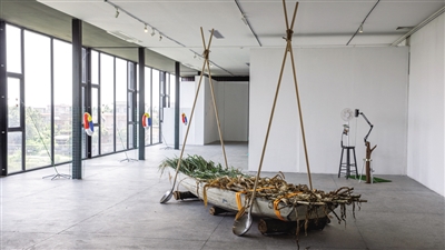 展览题目“围墩”源自古劳水乡的地景别称,是用于防洪作用的早期堤围,这是原住民从自然中获取的一种生态适应方案。两位艺术家选择那些日常遭忽略、被视作微不足道的渔务工具与日常物料,如渔网、增氧机、玉米秆等物件,展示了一系列蔚为奇观的多媒介景观,通过田野考察的驻地方式追溯围内受地貌形成的生态系统与其巧妙的流动平衡过程,演绎自然与人工渔农工业生产之间复杂的共生关系。