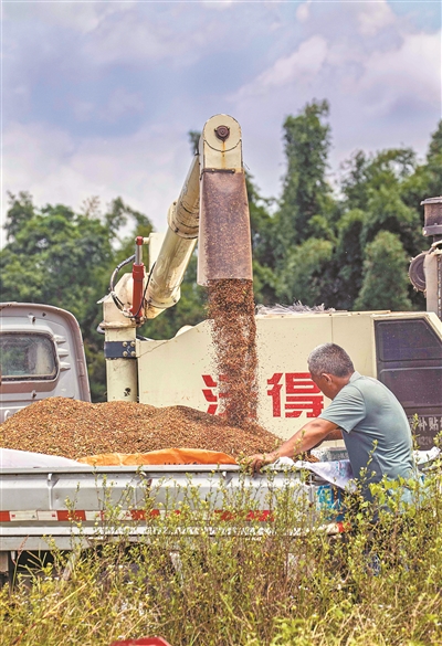 广州日报讯 (全媒体记者曾焕阳 通讯员黄进强、王亚娇摄影报道)盛夏,河源市江东新区古竹镇雅色村和榄西村700多亩红高粱熟了。连日来,当地乡村呈现出一派繁忙丰收的景象。据悉,当地乡村种植的高粱品种为红缨子高粱,产出的高粱籽全部销往贵州茅台镇酒厂作为酱香酒的专用原料。