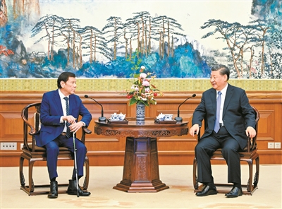 7月17日下午,国家主席习近平在北京钓鱼台国宾馆会见菲律宾前总统杜特尔特。 新华社发