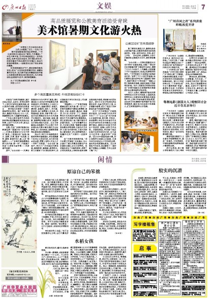 记者在广东美术馆看到,展厅内观众很多,在家长、老师的陪伴下,小朋友们或驻足凝神观画,或认真聆听讲解,或用相机拍照留念……美术馆内的清凉一扫室外高温带来的烦闷。据广东美术馆统计,暑期日均观众达3500人次,较暑期前日均人流量有明显增长。