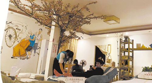 除了身体按摩,师傅们也会经常云淡风轻地说出几句人生哲理,给年轻人来一场“心灵按摩”。
