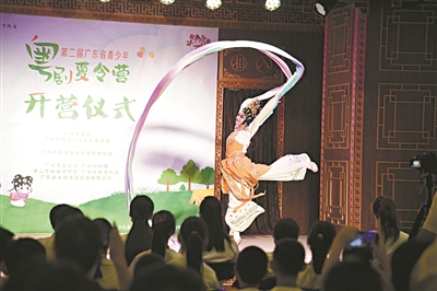 粤剧夏令营开营,广东粤剧院青年演员为营员表演粤剧折子戏《天女散花》。