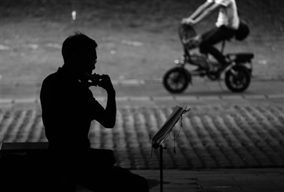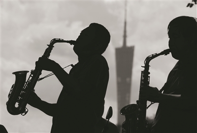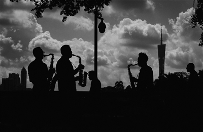 树影斑驳,萨克斯的音符流泻而出,如潮水般向珠江涌去。