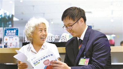 营业厅服务人员为“银发族”讲解智能手机使用事项。