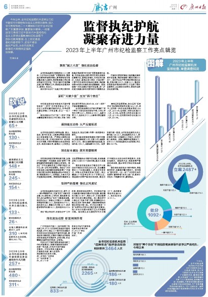 全市纪检监察机关围绕党的二十大精神,习近平总书记视察广东重要讲话、重要指示精神贯彻落实情况,聚焦贯彻省市高质量发展大会精神,推进粤港澳大湾区建设和南沙开发开放、“百县千镇万村高质量发展工程”等重点工作,推进政治监督具体化、精准化、常态化。