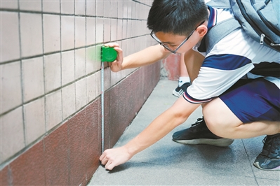 这个广州市铁一中学组织的“有爱无障少年行”系列活动,由一直致力于推动广州无障碍环境建设的广州政协委员郑子殷和有三十年教育经验的广州政协委员丁丹发起。活动当天,10名初中生在专业人士的带领下,对杨箕地铁站F口的无障碍电梯和周边的通道、市政公厕进行测量。