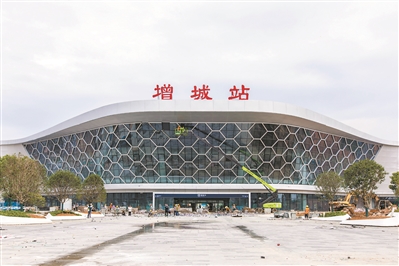 增城站作为广州市境内的两座车站之一,位于增城区石滩镇横岭村,是石滩镇第一座高铁车站。未来,增城站将与新塘站、黄埔站、增城西站一道,构成广州东部“三客一货”的枢纽集群,提升东部中心枢纽整体能级和服务水平,强化枢纽作用,提升城市能级和核心竞争力,为广州巩固提升国际综合交通枢纽功能提供重要支撑。