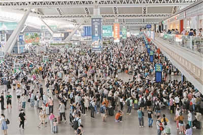 继暑运之后,广铁又将迎来国庆客运高峰。图为暑假期间,大批旅客在广州南站候车。 广州日报全媒体记者苏俊杰摄