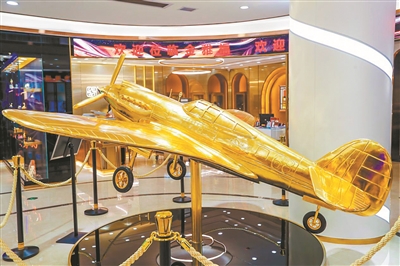 据悉,这款飞虎队战斗机黄金飞机纪念版由金雅福首饰制造出品,在多方反复磨合推进下,历时半年时间,才最终制作完成。摆件参照抗战时期飞虎队战机,以3:1的比例精心制作而成。机身全长3.2米,翼展3.8米。为了确保机身的坚固与安全,内部采用316不锈钢模型支撑骨架,同时外部使用纯金贴金,使得整个摆件既具有稳固的结构又彰显出高贵的气质。
