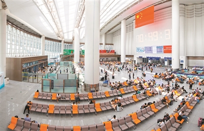 站房空间及内部设施、服务给人耳目一新的感觉。新站房总建筑面积从过去的约1.5万平方米扩展至约2.6万平方米,候车厅面积从过去的约1500平方米扩展至约8000平方米,能满足高峰时期每小时5000人的发送量;南、北两侧的新候车厅内部结构和装修相互对称。两座候车厅配备了近2000个候车座位,同时设有饮水间、洗手间、育婴室及商业配套,可满足乘客候乘需求。