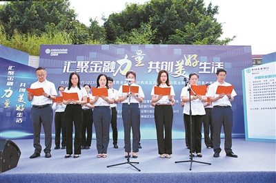 农行佛山各支行代表上台签订服务承诺函并进行消费者权益保护承诺宣誓。