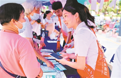 农行佛山分行的工作人员在互动摊位上为市民答疑解惑。