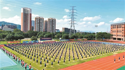 “咙咚咚嘿!咙咚咚嘿!”昨日,明快动感的旋律在西樵镇各中小学校园内响起,“狮武樵山”西樵镇万人醒狮操会演挑战吉尼斯世界纪录活动在西樵中学主会场拉开序幕,活动上同步启动2023南海醒狮功夫文化嘉年华。上午9时,22所中小学共24968名学生同时齐跳醒狮操,最终以挑战成功人数为24860人、成功率99.6%的比例成功创造“最大规模的醒狮操(多场地)”的吉尼斯世界纪录。 (广州日报全媒体记者高敏华 通讯员李婉心摄影报道)