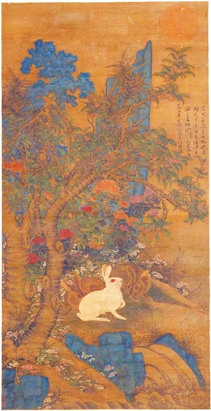 在古人看来,人老了头发会变白,那么,平时多见的杂色野兔,等它们长寿到了一定岁数,也会像人一样毛发变白。葛洪《抱朴子·内篇》有言,“虎及鹿、兔皆寿千岁。满五百岁者,其毛色白。能寿五百岁者,则能变化。”梁简文帝《上白兔表》也说兔子“千岁变采”——兔子活到一千岁,体毛的颜色会变化。从标题可知这是一只白兔,那么,所谓“变采”实际上就是变白。如此一来,白兔就成了“长生不老”的代名词,具有了神仙的性质,它在古代中国人心中的地位,也就更高了。