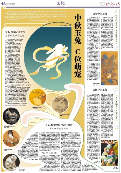全国各地流传着无数与兔子相关的传说。当玉兔与中秋联结起来,它是嫦娥怀中的宠物,也是桂花树下不停捣药治病去灾的神仙。从月宫到凡尘,得益于吉祥的寓意,玉兔也成为文学作品、民间艺术中的重要素材,在中华传统文化的丰厚滋养下茁壮成长,也在当代民众的广泛青睐中广为流传。