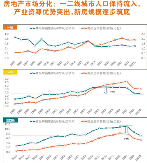 但城市之间的分化值得置业者给予关注。一二线城市人口保持流入,产业资源优势突出,新房规模有望逐步筑底;低能级城市住房回归消费属性,预计市场将延续回落态势,城镇化及购买力主导市场走势。