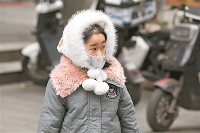 小朋友“全副武装”御寒。 图/广州日报全媒体记者苏俊杰、杨耀烨 通讯员罗丽芬