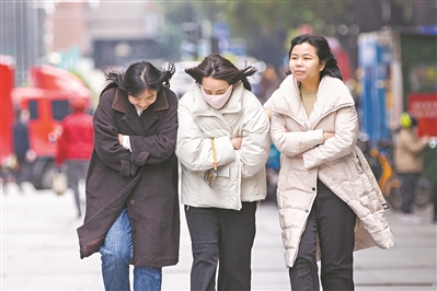 三名女生在寒风中并肩前行。 图/广州日报全媒体记者苏俊杰、杨耀烨 通讯员罗丽芬
