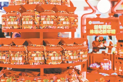 徐福记今年推出的新年糖包装别具匠心,将中式美学元素融入其中,兼具仪式感和实用性。罐身造型单个为福袋,成双是超大糖果,并绘制了传统制糖工序,罐盖倒装可以变成果盘,瓶颈处系了一条插画丝巾。亮眼的包装让新年糖产品格外受欢迎,据悉,目前在部分山姆超市,徐福记的年货处于售罄状态。一些县级批发市场,出现了经销商之间调货的情况。这份年货除了颜值高、品质好,还有环保的附加价值,为减少塑料使用,新年糖桶产品本身的罐身是采用100%RPET,盖子使用30%RPP。