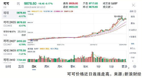 恶劣天气影响了可可与咖啡豆的产量,导致二者的期货价格不断走高。受可可主要生产国非洲科特迪瓦和加纳气候变化、作物病害等因素影响,可可豆减产,世界可可豆产量出现短缺,从而迎来“波澜壮阔的涨价”,过去一年,可可期货价格上涨超240%;咖啡豆方面,世界上最大的罗布斯塔咖啡豆生产国越南遭遇高温天气,其咖啡豆生产受影响。上周,罗布斯塔咖啡豆的期货价格创下历史新高。花旗银行预测,这二者的价格仍有上涨空间。