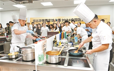 昨天上午11时30分,在广州市旅游商务职业学校的专业厨房赛场里,8位来自全国各地的参赛选手正全力以赴筹备作品。黄油煎牛肉、牛肉蔬菜汤……各种香气交织,在厨房中奏响“舌尖乐章”。