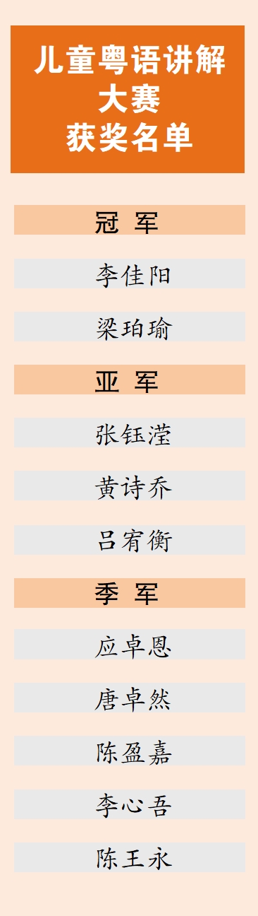 粤语相声表演艺术家黄俊英担任比赛评委,他表示,现在一些本地小朋友不会说粤语,让人感到遗憾。此次比赛用粤语讲粤菜,让小朋友们在乡音中感受家乡文化的传承,让人欣喜。