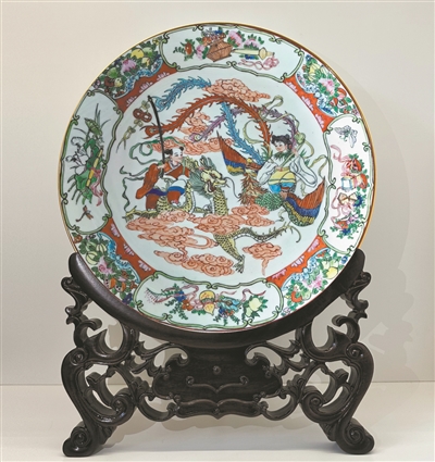 精品展则荟萃了来自广东省内19个地级市的178件民间工艺佳作。广州彩瓷《古湾繁景》以中国画的界画技法糅合广州彩瓷传统的描线、填色、晕染、封金等技艺,汇集古代广州各著名景点及今日粤港澳大湾区范围内的人文和自然景观,展现了“物阜民丰”的繁荣景象,仿如湾区的“清明上河图”。另一件潮州彩瓷则以火爆“出圈”的英歌为题,展现出“中华战舞”的勃勃英姿。