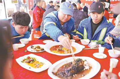 广州市总工会特别邀请“粤菜大师”和“星级名厨”,为十五运会场馆建筑工人、环卫工人等职工代表精心烹制团圆饭。胖头鱼摇身一变成为餐桌主角,与迟菜心等岭南食材碰撞出南北融合的独特味道。