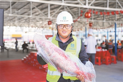 查干湖胖头鱼被赠予建筑工人、环卫工人、困难职工和新业态劳动者等群体代表。