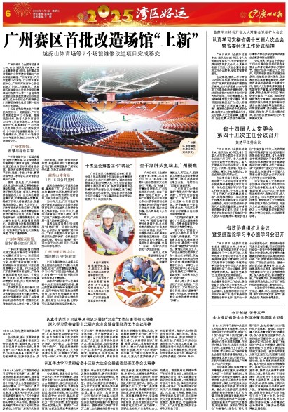 十五运会和残特奥会广州赛区共使用30个竞赛场馆、广州市负责改造其中23个场馆。按照既定计划,除省人民体育场于2025年1月底实体完工、4月底验收交付,省奥体中心于2025年3月底实体完工、6月底验收交付,1个临时场馆赛前搭建,1个场馆调出外,其他19个场馆于2024年底实体完工、2025年3月底验收交付。