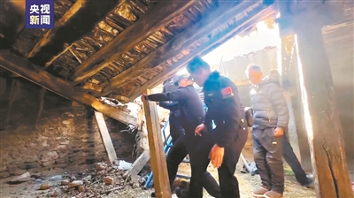 长所乡出现房屋倒塌,救援人员搬开瓦砾,寻找伤者。