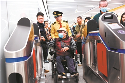 无论是车站内的吊挂导向、辅助贴纸,还是出入口至站厅、站台的导盲带,处处都留下了他的足迹。“自己多走一步,市民出行就会多一分便捷。”