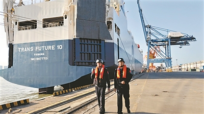 大年初一,经过20天航行,当日14时30分,一艘大型汽车滚装船“波西米亚”号从南非驶来,并安全靠港。