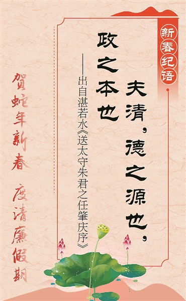 明朝时期,著名思想家、教育家湛若水在《送太守朱君之任肇庆序》中,借包拯“不持一砚归”的典故,强调官员清廉对社会民生的重要性:“夫清,德之源也,政之本也”。也就是说,官员只有保持自身的清廉方正,方能处理好司法、财政、军事等领域的治理问题,做到平息民争,宽裕民生,消除民患。对此,有人质疑,小小一方砚台如何关乎政治得失?湛若水淡定回答道:唯有从“一砚不取”这样的小事做起,才能守住底线,对于不义之财,无论价值几何,都不动丝毫邪念。